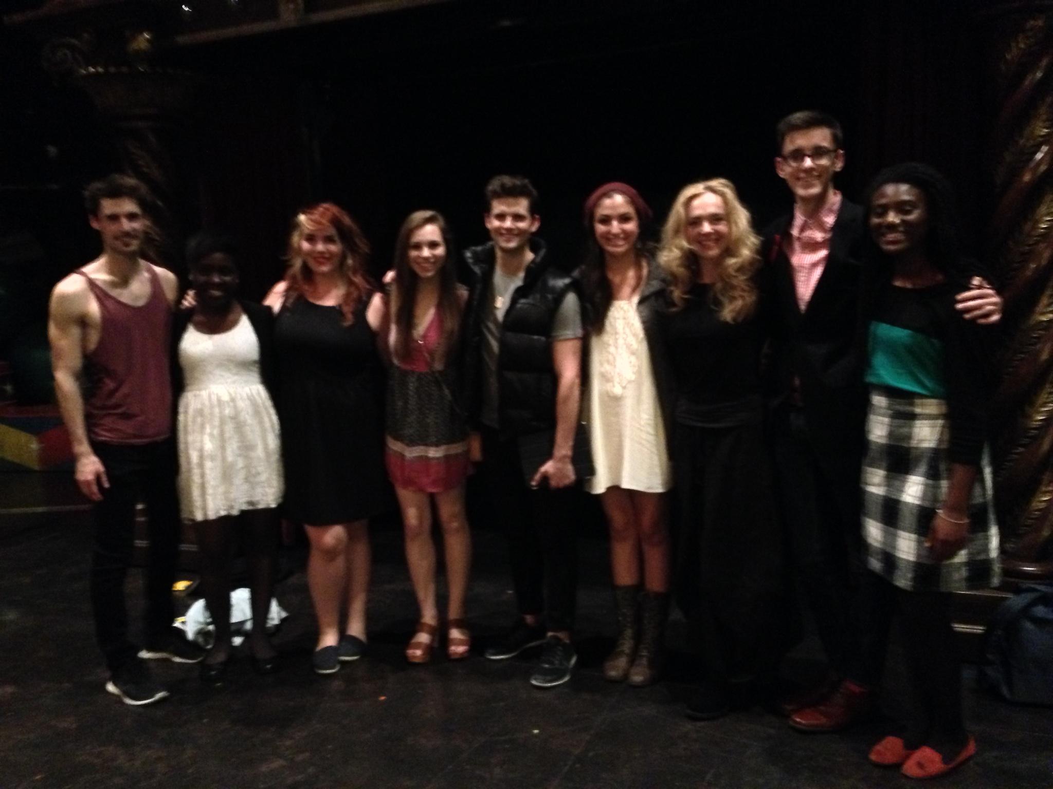 Friday evening left us like pre teens awing over their favorite celebrity. Thanks to the wonderful Jason Daunter, we got tickets to see Pippin. The show easily rose to my number one, as it provided entertainment and left me thinking. On top of that, we got to go backstage after the show and meet Kyle Dean Massey (a thespian alum) who plays Pippin! Along with Jason we also met Rachel Bay Jones (also a thespian alum) who plays Katherine. Needless to say, we were star struck.