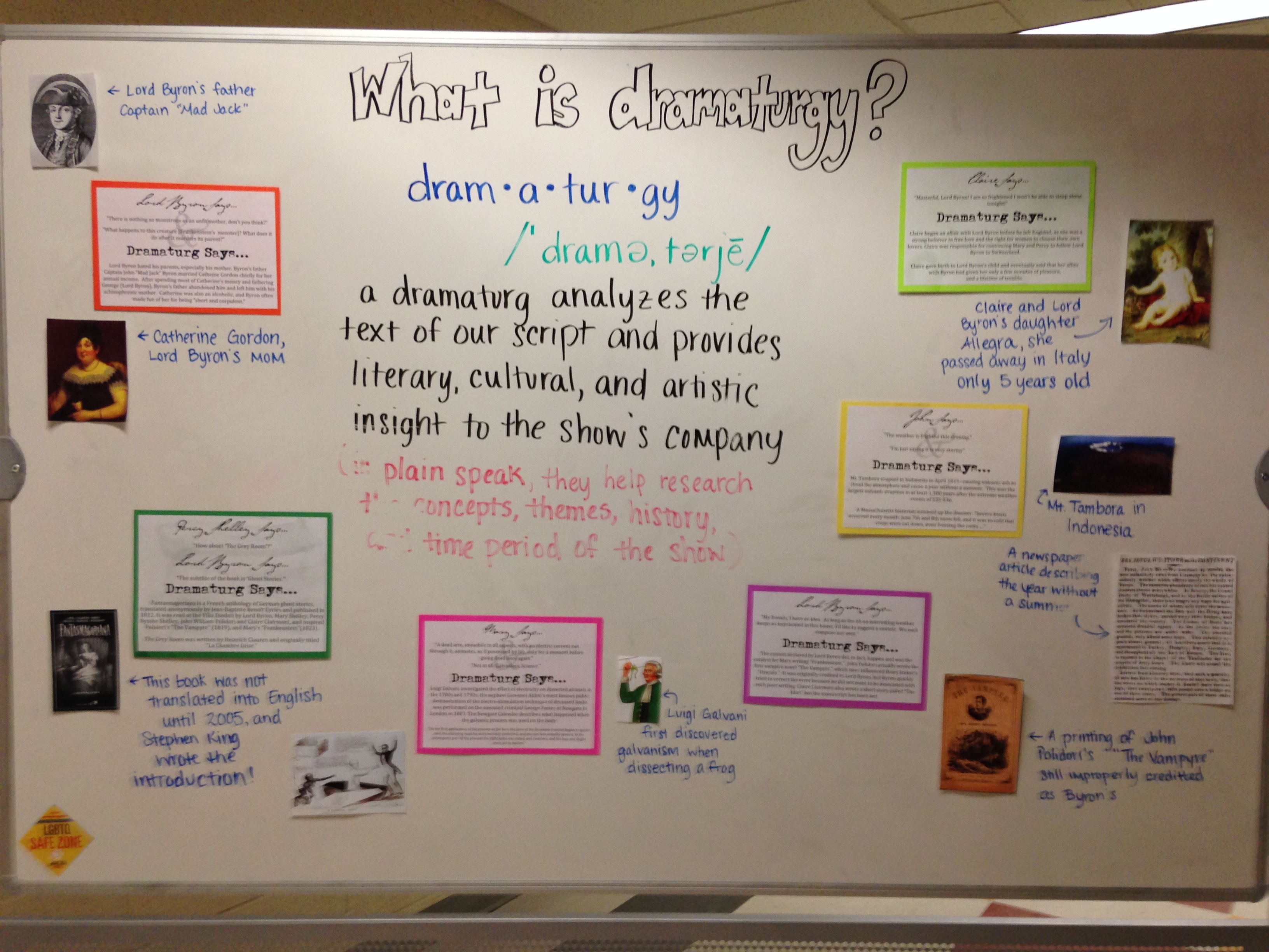 Specific concepts from each show researched as part of the dramaturgy, and so we created a display for those. For "Foreigner" it was xenophobia, the KKK, and David Duke. For "Monster," it was galvanism, the history of women's rights, and "Frankenstein."